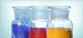 一种粉末状原料,用于产生各种颜色,处于不溶状态。小颗粒的颜色。