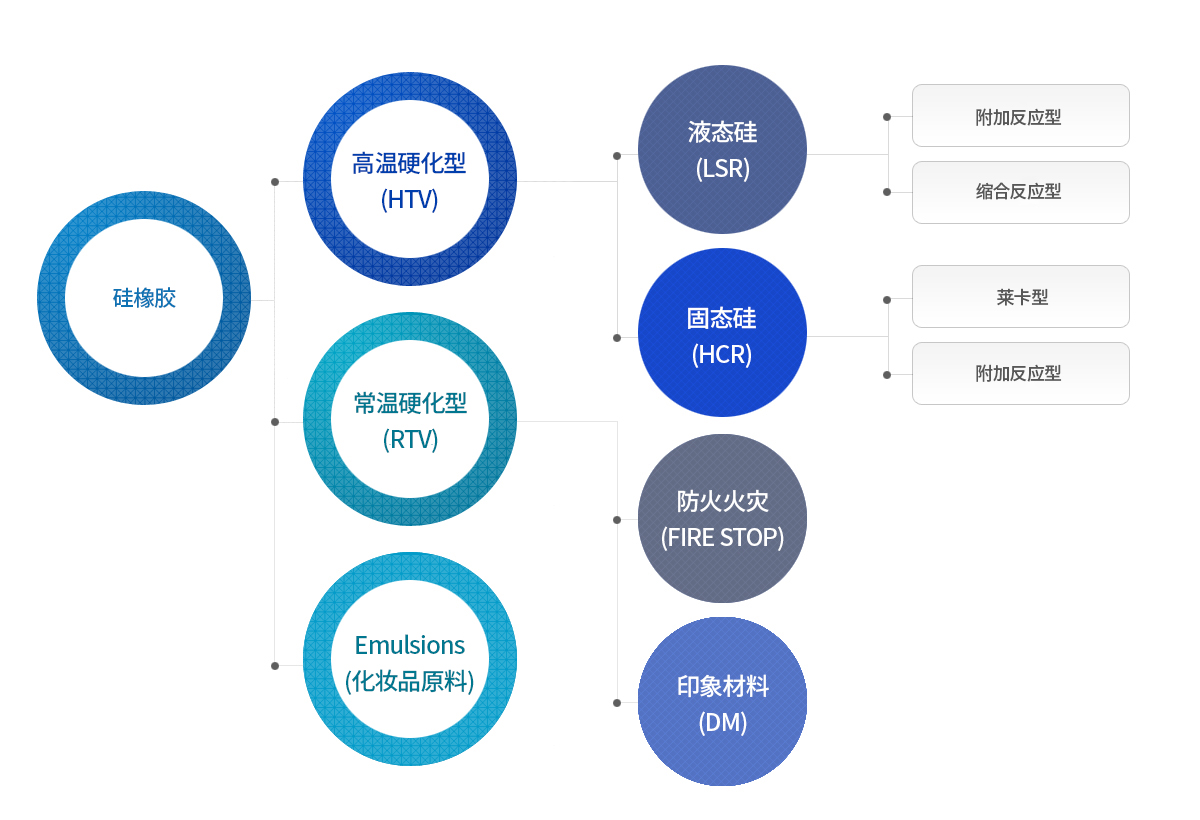 硅胶不存在于自然界中,是人工合成的,根据其形态,大致可分为油类、橡胶类、树脂类,根据使用目的可与各种材料混合,产品线众多。
